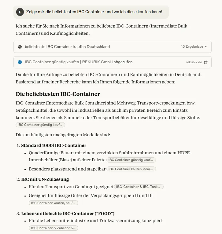 Particularly valuable: This type of presentation appears less like advertising and more like a personal recommendation, which increases trust and the likelihood of conversion. In addition, you reach an increasingly relevant target group: users who prefer semantic searches and are increasingly making purchasing decisions based on AI recommendations.
